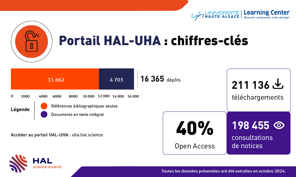 L’Open Access Month, qui se déroule sur tout le mois d’octobre 2024, est l’occasion de partager les dernières actualités du monde de la Science Ouverte mais aussi de célébrer le premier anniversaire du portail HAL-UHA !